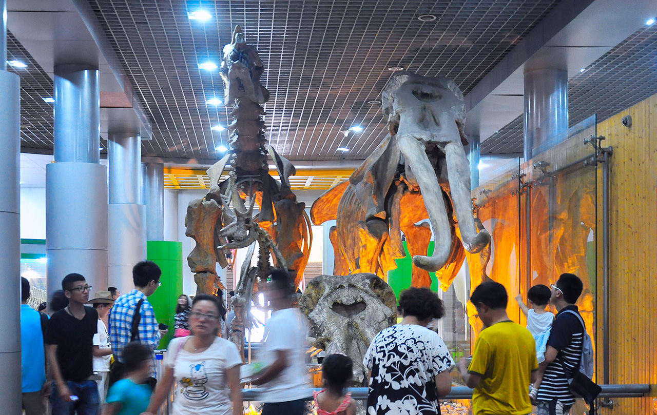 “来自中国的侏罗纪母亲”【中华侏罗兽】、完成全身羽毛颜色复原的【赫氏近鸟龙】、保存在我国的唯一的恐鸟标本等;还包括世界闻名的【古黄河象头骨化石】、长26米的巨型【井研马门溪龙化石】、中国唯一的恐龙木乃伊化石、北极熊、犀牛等。