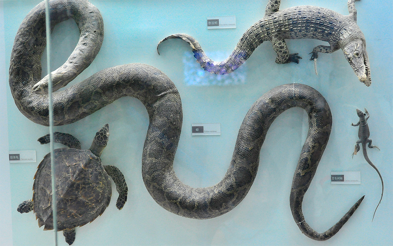 蛇,总是给人不寒而栗的感觉,如此巨大的蟒蛇即使在陈列窗里,看了之后,后背依然凉飕飕~~