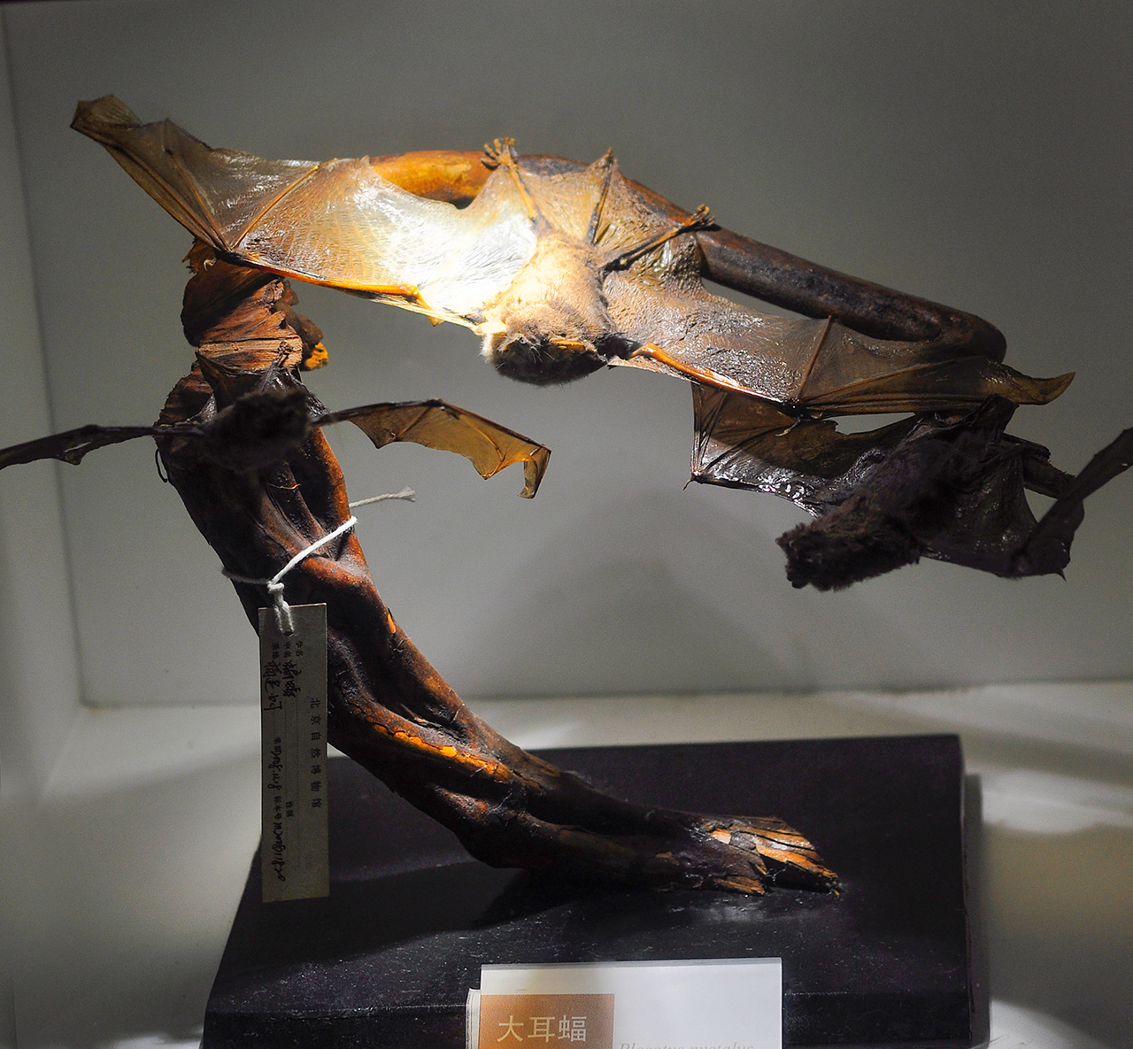【大耳蝠】飞行时,耳倒向后方,可停翔于空中捕食。大耳蝠的食谱中有其他蝙蝠,小型哺乳动物,大型的昆虫,鸟类和青蛙。捕食时,它们以很快的速度袭击猎物并使用其强而有力的嘴杀死对方。大耳蝠几乎没有天敌。偶尔人们可以听到大耳蝠发出的兴奋叫声。