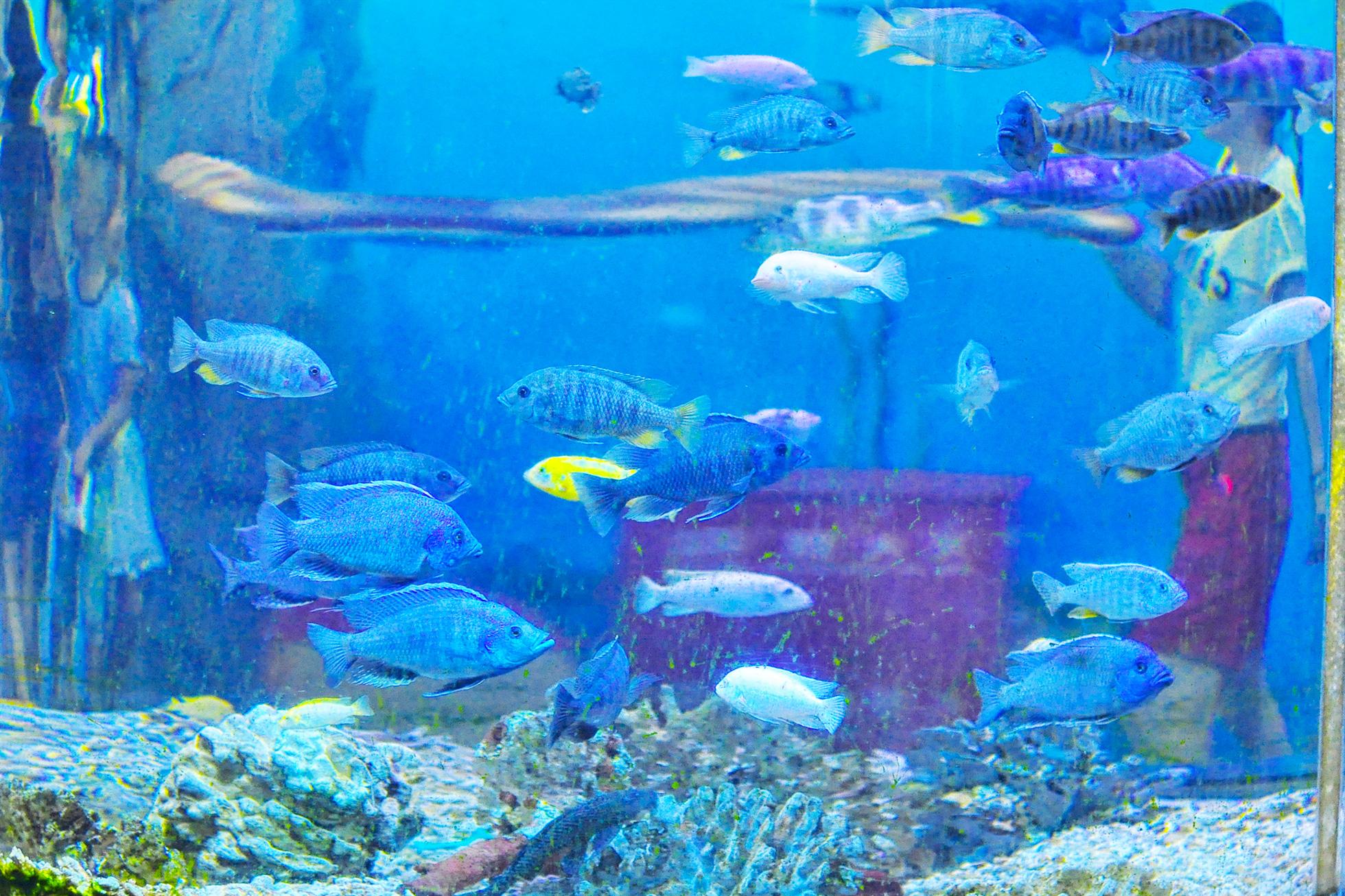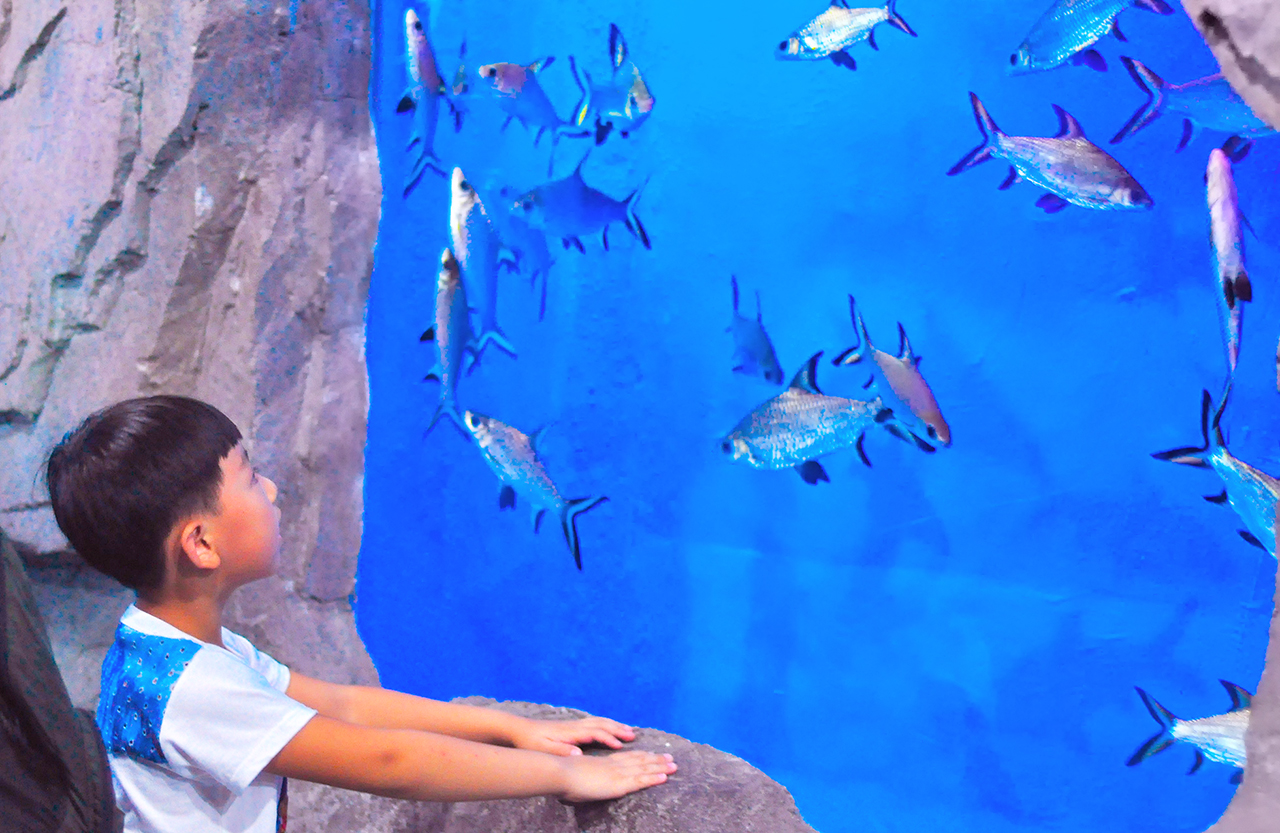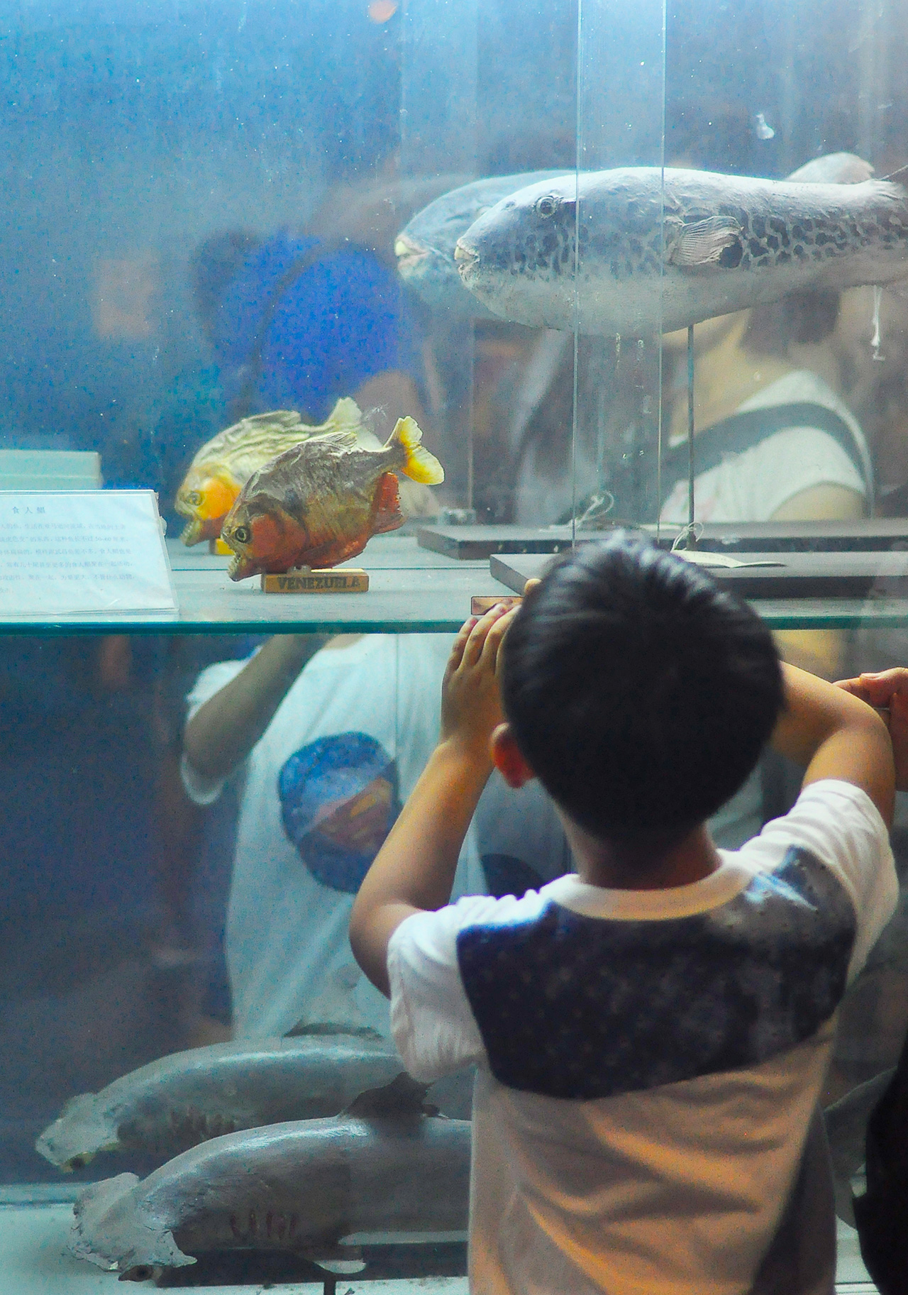 不要以为博物馆展示的只有标本哦,你看,大大小小的鱼呈现在眼前,还以为进了海洋馆吧,呵呵