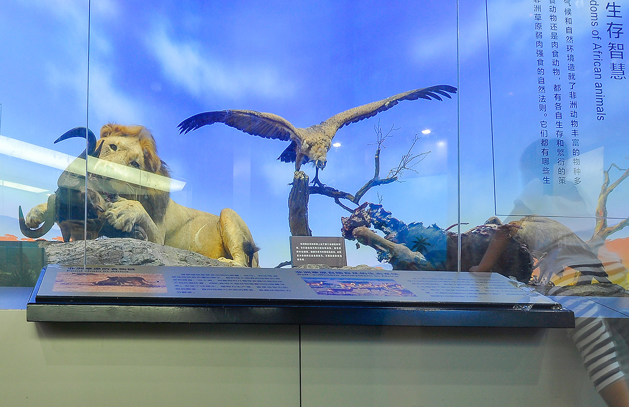 【神奇的非洲】展厅以非洲珍贵动物标本为基础,还原了野生动物赖以生存的环境,非洲大陆最具代表性的野生动物栩栩如生地再现于我们面前,充分展现非洲大陆的神奇。