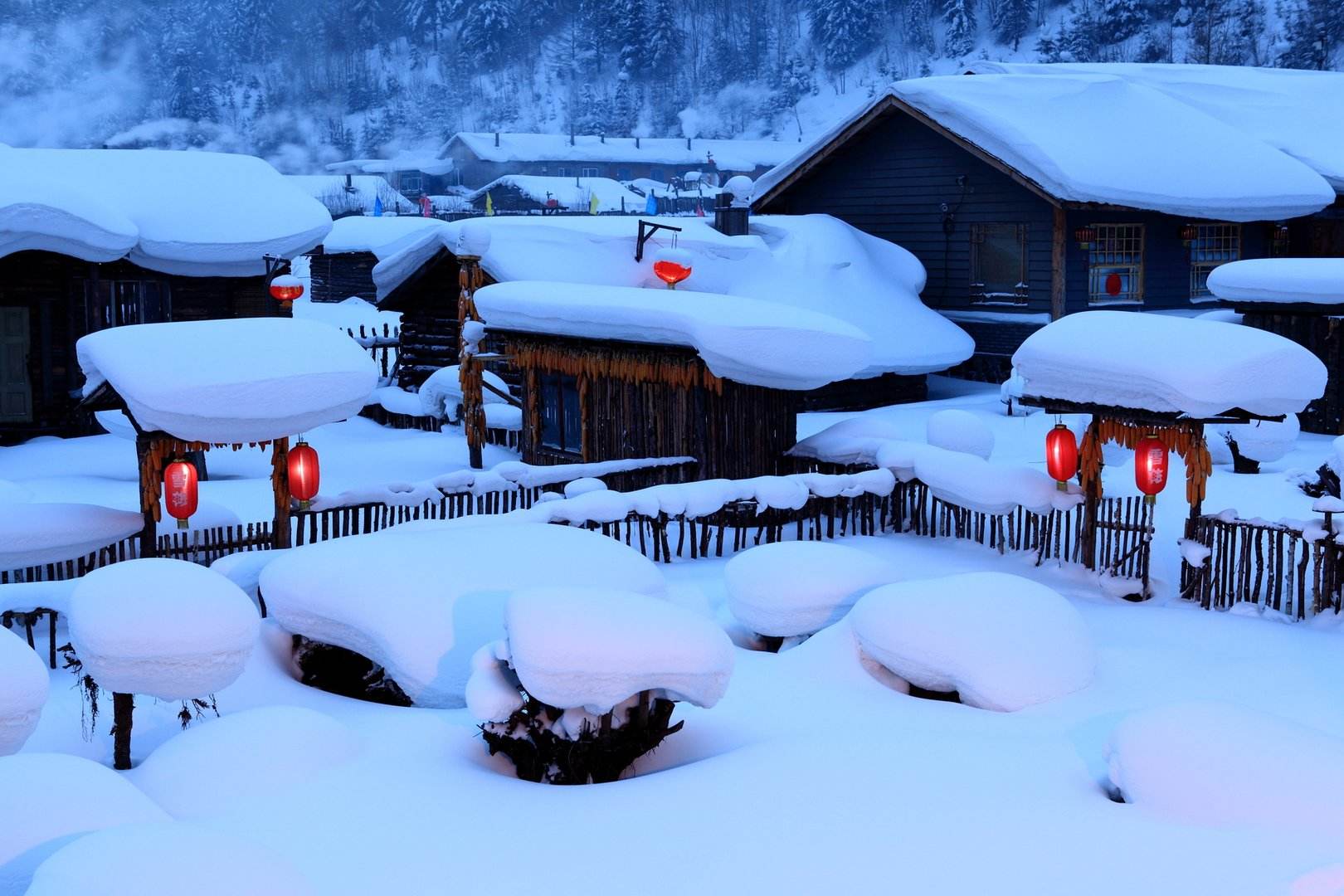 【银装素裹】醉美雪乡 | 雪乡从初冬冰花乍放的清晰到早春雾淞涓流的婉约,无时无刻不散发着雪的神韵,皑皑白雪在风力的作用下随物具形,千姿百态,雪乡的夜景尤为美丽,淳朴的雪乡人在自家挂起大红灯笼,洁白如玉的白雪在大红灯笼的照耀下,宛如天上的朵朵白云飘落人间,幻化无穷。