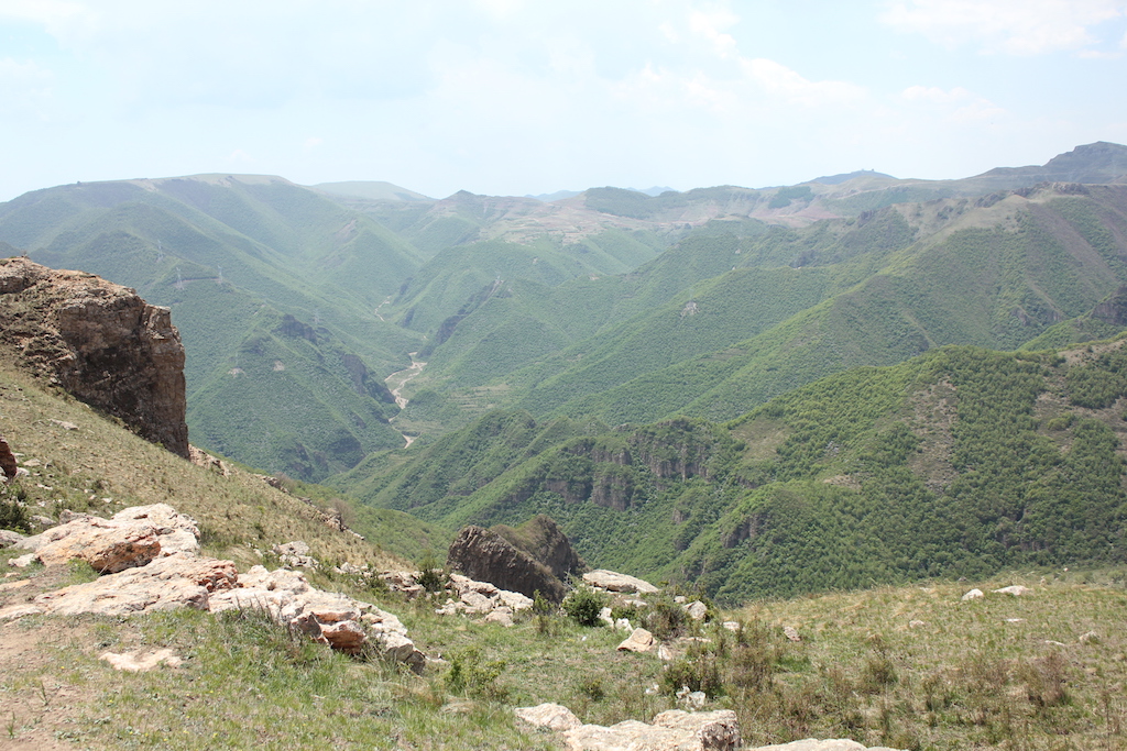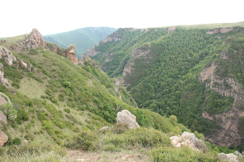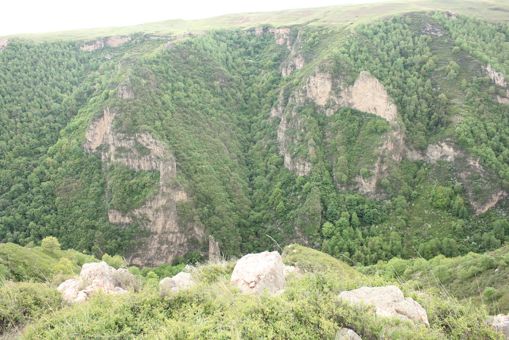 在两边是巨大的山石嶙峋的小道蜿蜒一段时间后,来到一个一周全是山,中间一块平底的地方,这里的山有的时候感觉跟云台山那里的山样子差不多