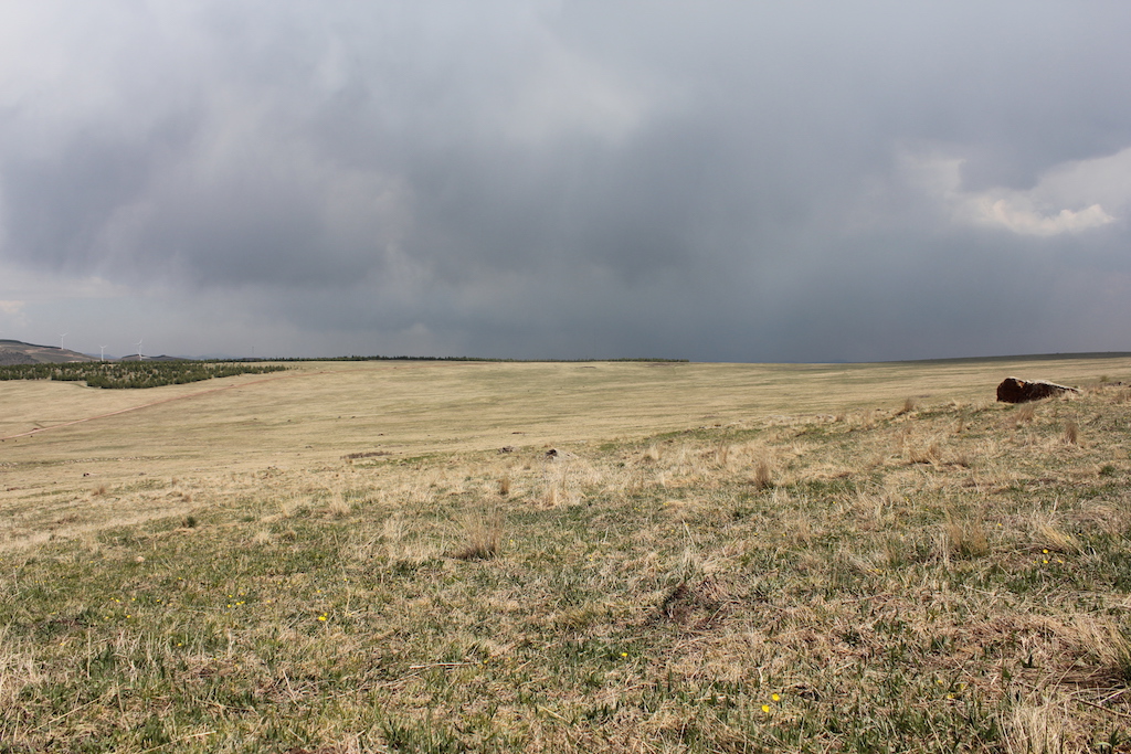 可能这里是地势比较高的缘故吧,刚才还蓝天白云的,一会儿就飘过来一片黑云,远处来的路上已经能看到下雨了,另外一边还是艳阳高照的,神奇